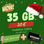 In Zusammenarbeit mit TARIFFUXX bekommst du beim Vodafone CallYa Digital Tarif gleich zwei exklusive Boni: Einen 30€ Amazon Gutschein und 10€ Extra-Guthaben bei Rufnummernmitnahme. Der Prepaid-Tarif bietet dir 35 GB Datenvolumen im Vodafone D2-Netz.