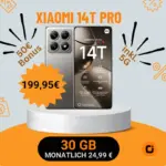 Auch wenn das Xiaomi 14T Pro zu den Premium-Smartphones gehört, kannst du es aktuell bei Sparhandy zu einem Hammerpreis von 199,95 EUR in Kombination mit dem otelo Allnet Flat Classic Tarif sichern. Mit 30 GB Datenvolumen und einer Downloadgeschwindigkeit von bis zu 50 Mbit/s surfst du problemlos im Vodafone-Netz. Für Vielnutzer ist das 1 TB Speicher die perfekte Wahl – genug Platz für Fotos, Videos und Apps.