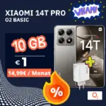 Das Xiaomi 14T Pro im Bundle mit dem O2 Basic 15 ist ein echtes Schnäppchen. Du bekommst ein Oberklasse-Smartphone mit Leica-Kameras, ein hochwertiges 120W-Schnellladegerät und einen soliden 5G-Tarif – alles für nur 1 Euro Zuzahlung.