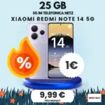 MediaMarkt bietet aktuell das Xiaomi Redmi Note 14 5G mit dem Super Select S On Tarif an. Du bekommst das Smartphone für einmalig 1,00 € und zahlst eine monatliche Grundgebühr von nur 9,99 €. Der Tarif umfasst 25 GB Datenvolumen im 5G-Netz von Telefónica, eine Allnet-Flat für Telefonie und SMS sowie eine Mindestvertragslaufzeit von 24 Monaten. Mit einem effektiven monatlichen Preis von nur 3,15 € ist dieses Angebot ein echtes Schnäppchen.